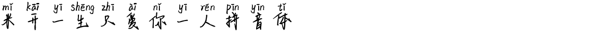 | 字体名称: | 米开一生只爱你一人拼音体 | 所属分类: | |